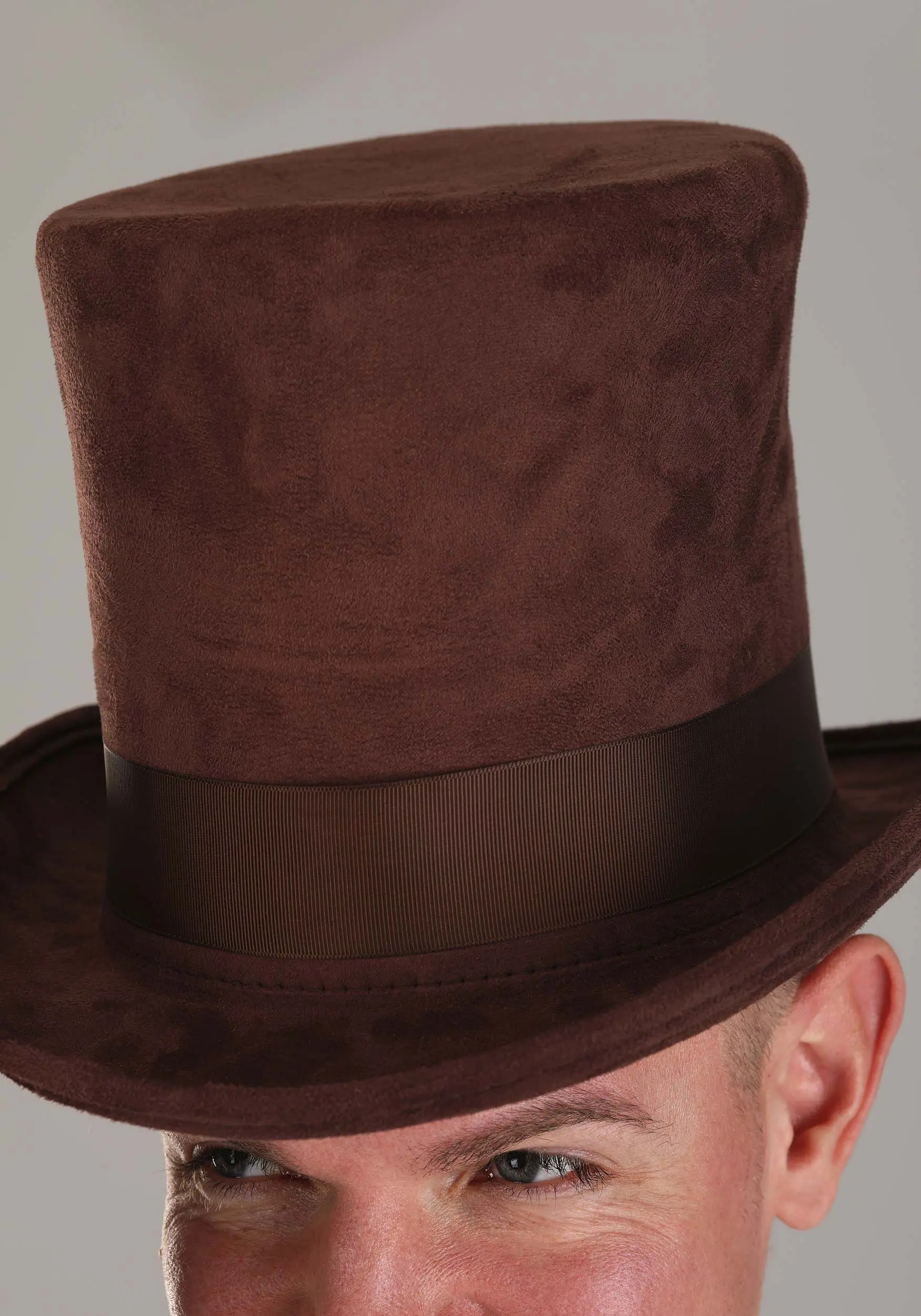 This exclusive Adult Brown Top Hat is a great way to top off an 18th or 19th Century costume! The molded top hat is made of soft brown polyester felt. Its high crown is banded by a brown grosgrain ribbon, and the inside is fitted with a size-adjustment band.