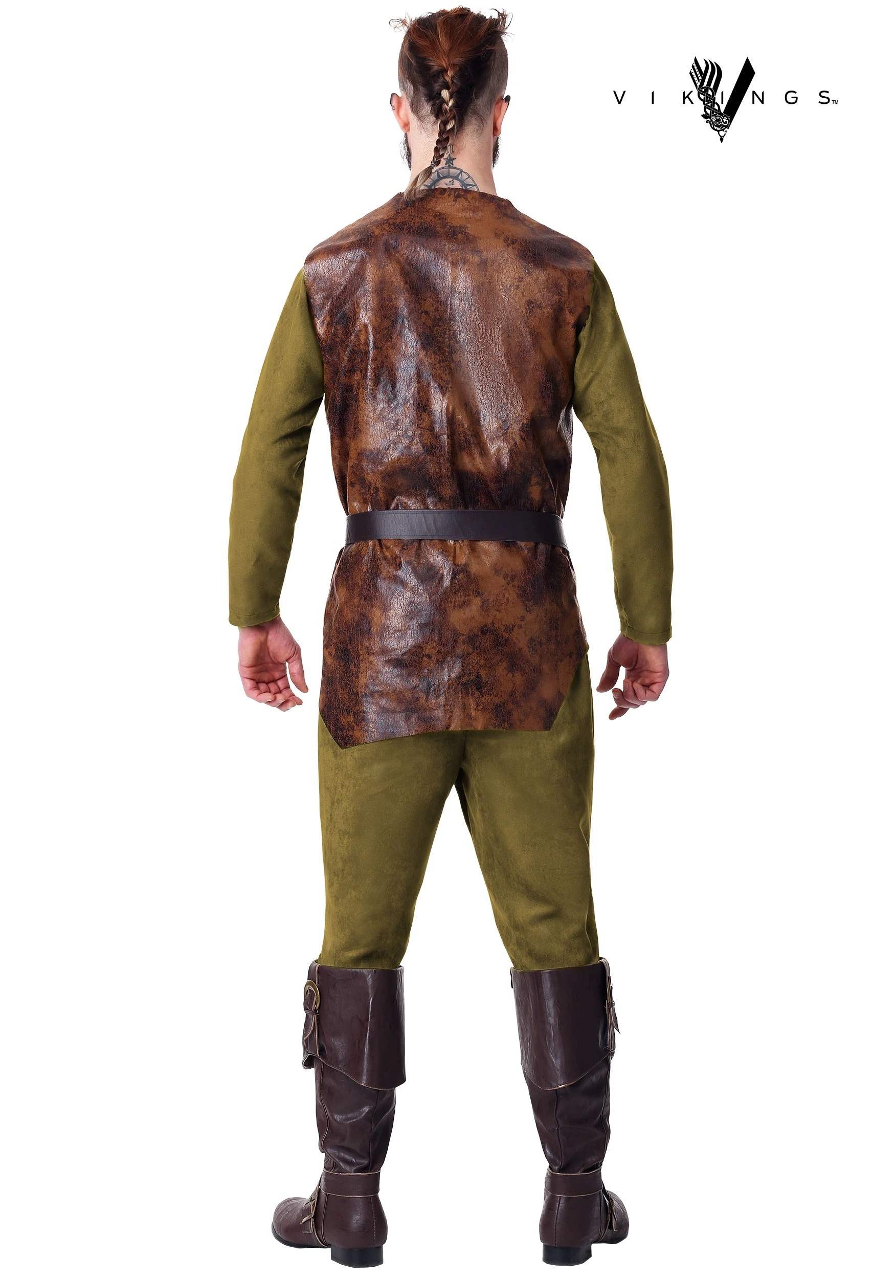Our creative team is pleased to present this licensed Vikings Floki costume. You’ll look ready for battle and designing new seafaring technology in this rough and tumble look. This Made by Us look features a faux leather tunic with oversized stitching on the front and a faux leather belt around the waist. The soft green undershirt and pants will keep you warm as you sail through the fjords and on to unknown lands. Just to be sure to add Floki’s dramatic eye makeup to make your character instantly recognizable. Now, whether you use charcoal or eyeliner is up to you!