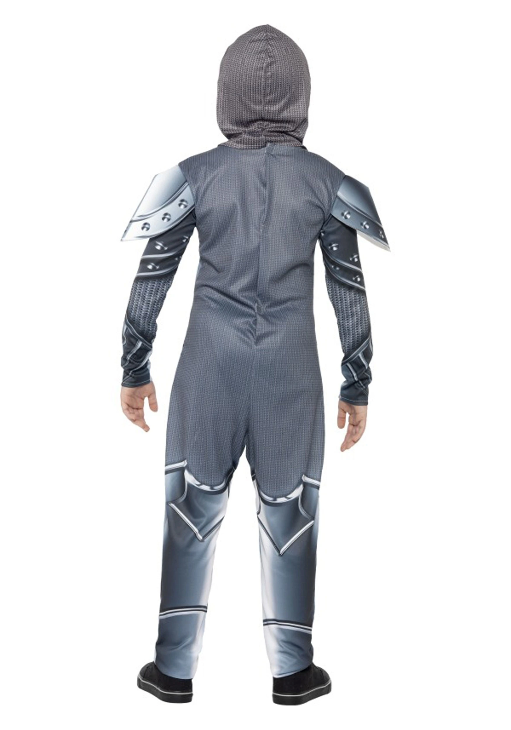 The child knight costume does a great job of looking like a full set of plate armor without all the downsides of actually wearing heavy armor. The jumpsuit is made of lightweight fabric that has printed armor and chain mail on the front, so your child will look like he’s equipped to take on a dragon, but he’ll feel nimble enough to dance like a jester. The front even has a printed lion emblem on the front to let would-be troublemakers know that he has the courage of a lion!